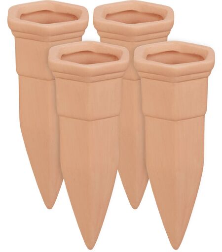Cône d'arrosage, argile, x4, bouteilles de vin et en pet, jardinières et plantes en pot, arroseur, terre cuite - Relaxdays