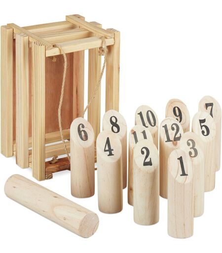 Relaxdays Kubb, jeu kubb viking en bois, caisse de transport, adultesm enfants, 12x28x18m5 cm, jardin, camping, nature