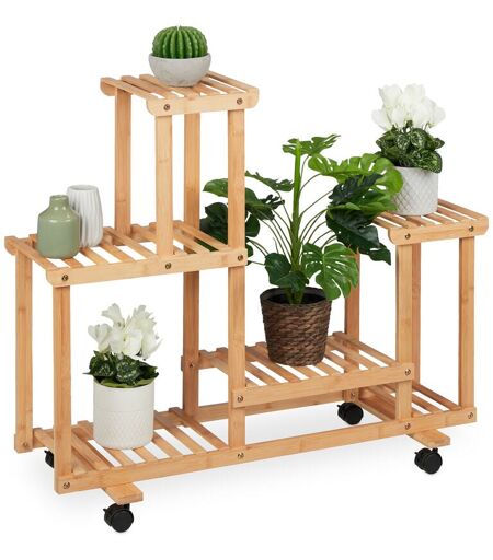 Relaxdays - tagère à plantes, avec 6 emplacements, en bambou, roulettes, hlp : env. 79 x 95 x 36 cm, intérieur, nature