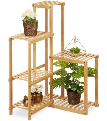 Relaxdays - Meuble plantes bambou, 6 étagères, Rangement d'angle, h x l x p : 101x62x62 cm, ranger fleurs salon, nature