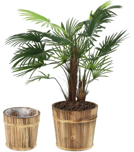 Pot de fleurs en bois, lot de 2 différentes tailles, ø 24 et 19 cm, pour l'intérieur et l'extérieur, nature - Relaxdays