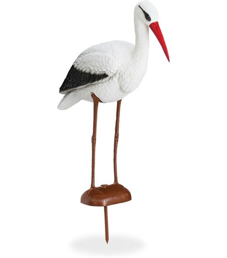 Statue de jardin cigogne, Figurine de décoration, protection héron, naissance, 80 x 22 x 64 cm, blanc/rouge - Relaxdays