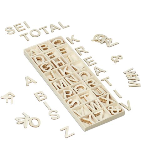 Lettres en bois, lot de 162 pièces, majuscules, alphabet, 3 cm, bricoler, déco, diy, wooden letters, nature - Relaxdays