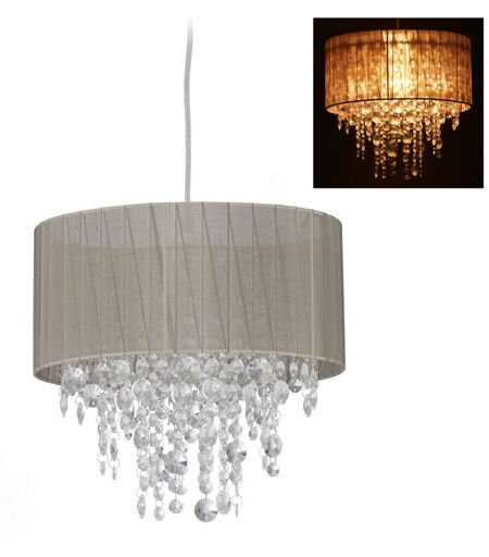 Relaxdays - lampe suspension en cristal, Abat-jour en organza, E27, lustre pour salon, Hx d 129 x 32 gris/argent