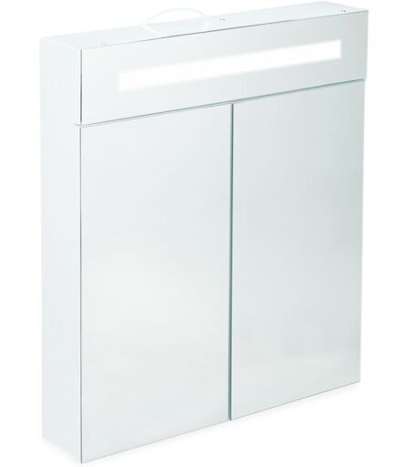 Relaxdays - Armoire de toilette à led, Meuble salle de bains, 2 portes, Placard mural miroir, hlp 67 x 60 x 12 cm, blanc