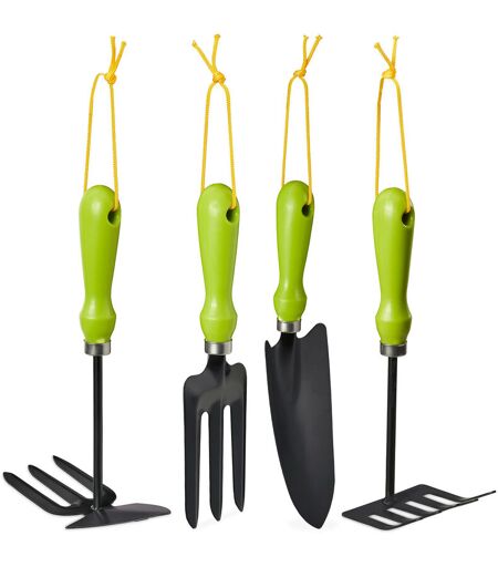 Outillage de jardin, jeu de 4 pièces, truelle à fleurs, serfouettes, jeu d'outils pour plantes, en fer, vert - Relaxdays