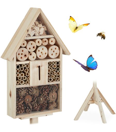 Hôtel à insectes sur pied, Maison à insectes, abeilles refuge, Nid cabane Jardin HxlxP: 140x47x47cm, nature - Relaxdays