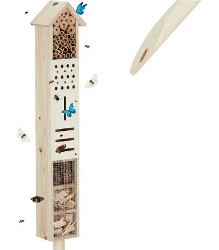 Hôtel à insectes piquet Maison à insectes abeilles refuge nid cabane jardin, 148 cm, nature - Relaxdays