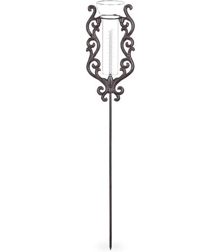 Relaxdays Pluviomètre vintage, avec piquet, décore l'extérieur, antique, 12cm, 5 inches verre, métal, orné, bronze