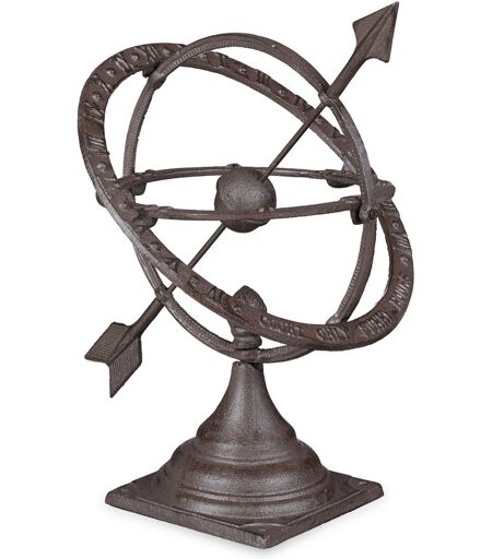 Cadran solaire, design antique, décoration de jardin, résistant, fixage au sol, 42cm, fonte, marron - Relaxdays