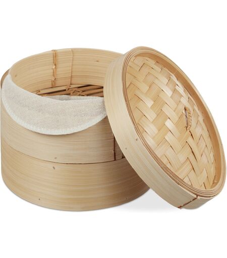 Cuiseur vapeur bambou, panier asiatique avec 2 étages, pour Dim Sum, riz, bamboo steamer, ø 20,5 cm, nature - Relaxdays