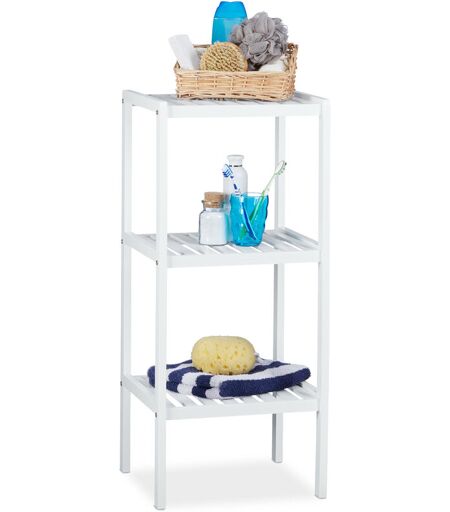 Relaxdays - tagère de salle de bain en bambou meuble sur pied cuisine en bois 3 étages HxlxP: 80 x 34,5 x 33 cm, blanc