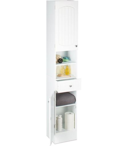 Relaxdays - Colonne de salle de bain en bois blanc armoire porte tiroir meuble de rangement mdf lamelles HxlxP: 173,5 x 30,5 x 32 cm, blanc