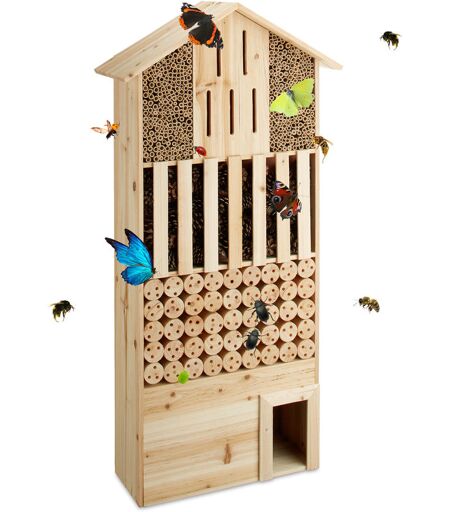 Hôtel à insectes en bois xxl abri abeilles papillon jardin balcon hérisson HxlxP: 118 x 57 x 24 cm, nature - Relaxdays