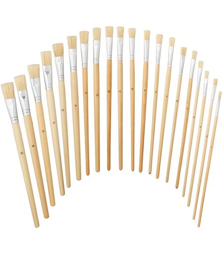 Vous aimez réaliser divers projets créatifs ? Alors optez pour ce set varié pour être équipé au mieux ! Ce set comprend des pinceaux en poils véritables de la taille 1 à 20. Ainsi, ils vous permettront de réaliser un travail précis, que vous souhaitiez utiliser de la peinture acrylique, à l’huile ou à l’eau. Les poils véritables permettent à la peinture d’adhérer de manière optimale et d’obtenir un résultat homogène et professionnel. À vos pinceaux ! Lot de pinceaux en détail - Longueur des pinceaux : env. 29,5 - 33 cm - Pinceaux en tailles de 1 à 20 - Poids total : env. 310 g - Matériaux : bois de bouleau, soie de porc, aluminium - Couleurs : nature, argenté Pinceaux pour artistes - Lot pour créer de superbes projets artistiques - Pinceaux en taille 1 à 20 pour un travail précis & détaillé - Pour des peintures acryliques, à l’huile ou à l’eau - Poils véritables pour une répartition optimale de la peinture - Avec long manche en bois pour une bonne prise en main - Lot varié pour les ...