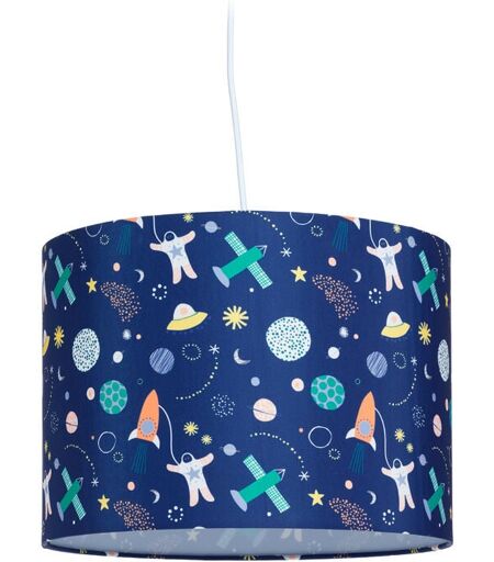 Cette lampe suspendue au joli motif décoratif avec fusée, planètes, avion et spationautes ravira les futurs petits hommes de l’espace et tous les passionnés de l’univers. L’abat-jour rond et bleu du lustre confère à la chambre d’enfant ou la salle de jeux une ambiance particulière. Le design original et plein de couleurs de cette suspension ravira les enfants prêts à de nouvelles aventures. Placez le plafonnier suspendu dans la chambre de votre petit bout de chou pour un réveil en douceur ou pour une dernière séance de jeu avant une bonne nuit. Lampe de chambre d’enfant en détail - Dimensions H x D : env. 155 x 35 cm - Hauteur de l’abat-jour : env. 25 cm - Longueur du câble : maximum 120 cm - Poids : env. 0,6 kg - Matériau : plastique - Couleurs : multicolore Caractéristiques techniques de la lampe - Douille : E27 - Puissance max : 60 W - Tension d’alimentation : 230 V - Fréquence : 50 Hz - Sans ampoule Lampe motif de l’espace pour les enfants - Design décoratif sur le thème de ...
