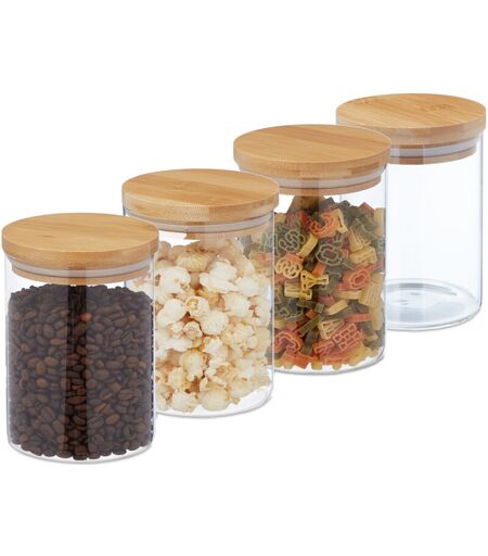 RELAXDAYS 8 bocaux de conservation avec couvercle en bambou, bocaux en verre de 750 ml, hermétiques, transparents/nature