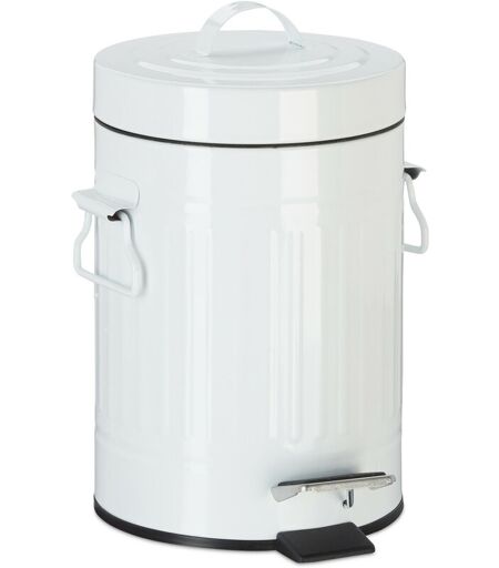 Poubelle à pédale vintage, Poubelle à déchets pour la cuisine ou la salle de bain, en métal, Blanc, 3 litres - Relaxdays