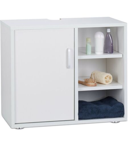 Relaxdays - Dessous de Lavabo 1 Porte Placard Salle de bain 3 Étagères Meuble Sous Vasque wc sdb 51x60x32cm, Blanc