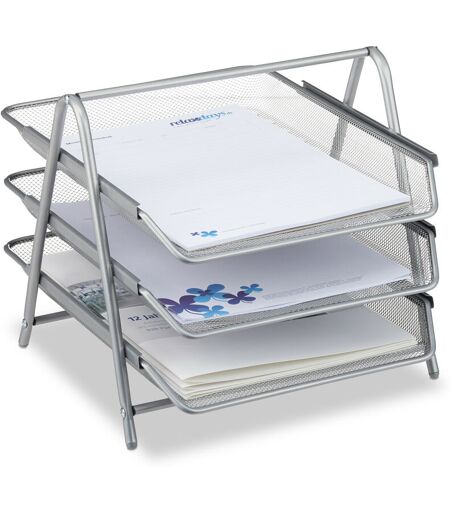 Corbeille à courrier 3 niveaux porte-courrier 3 étages métal bureau trieur documents A4 , argenté - Relaxdays