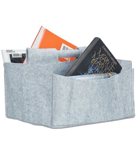 Panier en feutre journaux magazine corbeille pliable rangement poignées 2 compartiments HxlxP: 22 x 32 x 29 cm, gris - Relaxdays