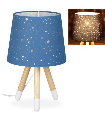 Lampe de chevet, veilleuse pour chambre d'enfants, douille E14, abat-jour rond, 40 cm de hauteur, bleue - Relaxdays