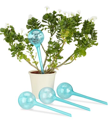 Globes d'arrosage plastique, lot de 4, distributeur eau plantes 2 semaines pot fleurs 250 ml, bleu clair - Relaxdays