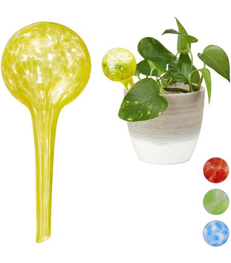 Globes d'arrosage lot de 2, Distributeur eau plantes et fleurs, outil de bureau, ø 6 cm, verre, jaune - Relaxdays