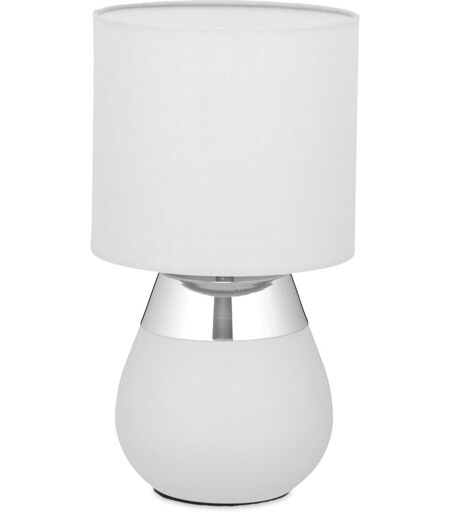 Avec cette lampe de table moderne vous faites entrer chez vous un accessoire élégant. La lampe tactile avec socle en fer et abat-jour rond convainc avec sa combinaison de couleurs. Grâce au long câble, la lampe de table avec abat-jour peut être placée comme vous voulez dans votre salon ou chambre. Dans cette pièce elle se charge de donner un éclairage d’ambiance avec sa lumière indirecte. La lampe de table de chevet est mise en marche en touchant le socle. Trois degrés d’éclairage peuvent être choisis. Lampe de chevet avec fonction tactile dans les détails - Dimensions totales H x D : env. 32,5 x 18 cm - Abat-jour H x D: env. 16 x 18 cm - Longueur du câble: env. 147 cm (avec fiche) - Matériau : Fer, tissu, plastique - Poids : env. 650 g - Plusieurs couleurs Détails techniques - Douille : E14, max. 40 W) - Tension d’alimentation : 230 V - Fréquence: 50 Hz Livrée sans ampoule Lampe de table avec fonction tactile - Accessoire décoratif pour salon ou chambre à coucher - Lumière indirecte ...
