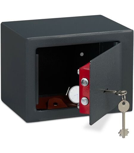 Coffre-fort avec clé, Panneton double, Fixation au mur ou au sol, petit coffre-fort, hlp: 17x23x17, gris foncé - Relaxdays