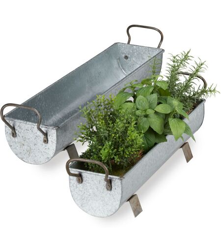 Balconnière gouttière pot de fleurs métal jardinière zinc jardin bac à fleurs déco set de 2, argenté - Relaxdays