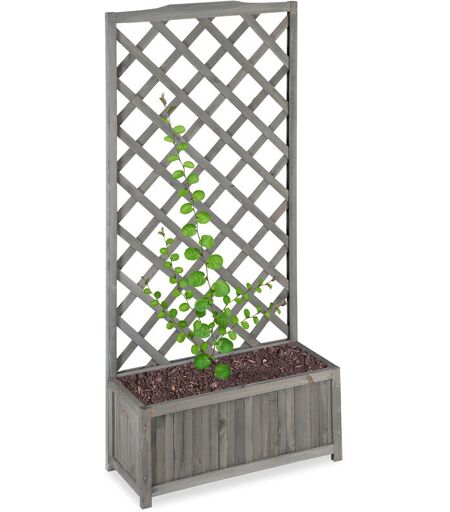 Relaxdays - Jardinière avec treillis espalier Tuteur plantes grimpantes bac à fleurs bois vigne lierre 35L, 150cm, gris