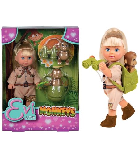 Ta mini poupée mannequin Evi 12cm est prete a explorer de nouvelles contrées ! Evi porte une jolie tenue d'exploratrice, et possede un sac a dos ainsi que des jumelles. Elle est accompagnée de 2 petits bébés singes. A partir de 3 ans. ...