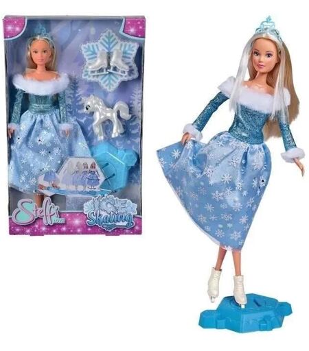Simba Toys 105733631 Steffi Love Patinage - - Ta poupée Steffi 29cm est devenue une véritable reine du patinage sur glace ! Elle porte une magnifique robe bleue vaporeuse avec des imprimés flocons de neige. Son diadème vient parfaire son look de princesse. En quittant ses sandales à talons bleues, elle chausse ses patins. Comme par magie sur la plateforme de glace, elle tourne et glisse ! Sa licorne nacrée l'accompagne dans ses danses. - - - Dimensions - 29 cm - À partir de 3 ans ...