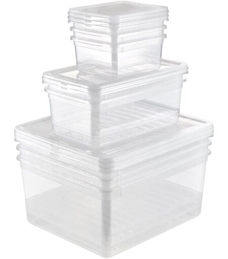 ZANVIC Set 8 boîtes de rangement : 3x1,7 l + 2x5,6 l + 3x18 l, Plastique, Naturel Transparent