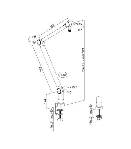 doubles ressorts de suspension sur chacun des deux éléments du bras, adapté à la plupart des microphones vocaux & dyna- miques (filetages universels 3/8' & 5/8'), bras à ciseaux rabattable, pivote sur 360 degrés, (AA0127) dimensions : (L)72 x (P)61 x (H)1.095 mm ...