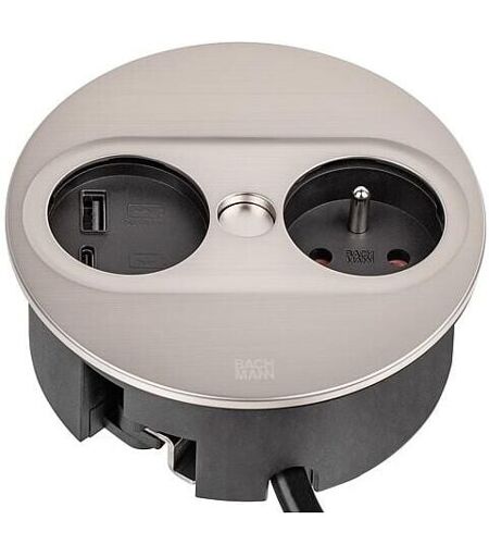 Bachmann TWIST 2 prise de table, 1x UTE, 1xUSB-A/-C Charger, acier inoxydable, ronde, France