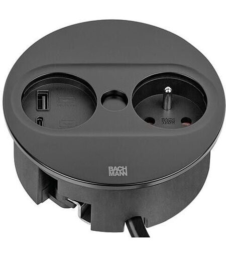 Bachmann - twist 2 prise de table, 1x ute, 1xUSB-A/-C Charger, noir mat, ronde, France