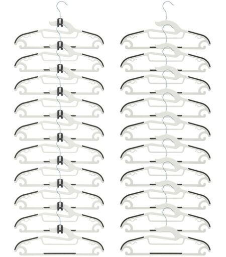 NO BRAND Eyepower 20 Cintres antidérapants 10 Crochets Cintres gainés en caoutchouc Peu encombrants Cintres en plastique Blanc