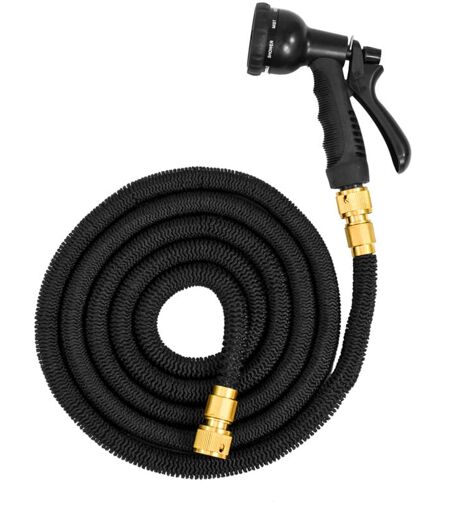 eyepower Tuyau pour Arroser élastique Magic Hose extensible 3 fois sa longueur de 2,5m à 7,5m + Pistolet d'Arrosage connecteurs en laiton Noir