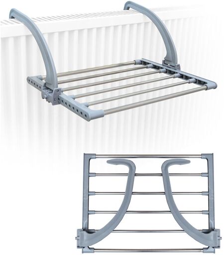 eyepower Tendoir Séchoir à linge pliant 47x32x20,5cm à accrocher sur le radiateur fenêtre bain pour étendre sécher lessive vêtements mouillées Acier Inox