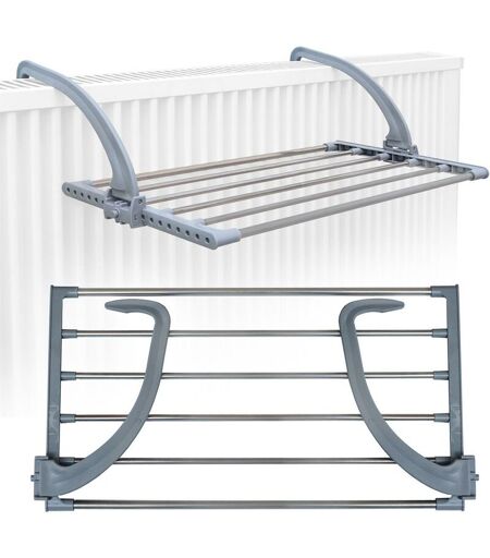 eyepower Tendoir Séchoir à linge pliant 62x32x20,5cm à accrocher sur le radiateur fenêtre bain pour étendre sécher lessive vêtements mouillées Acier Inox