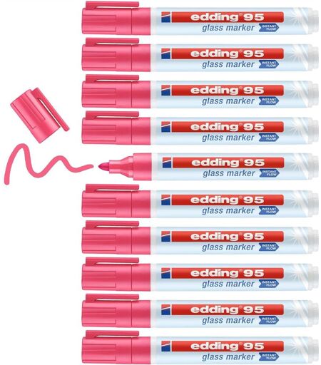 Edding Lot De 10 Marqueurs Pour Verre 95 Rose 1,5-3 Mm