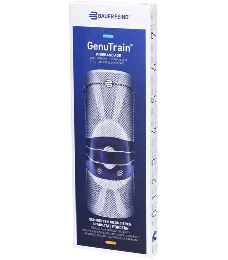 La GenuTrain donne à votre genou plus de sécurité pour effectuer le mouvement favorable à la guérison. Elle soulage les douleurs et favorise la mobilité grâce à un massage utilisant différentes variations de pression et à la stimulation de certains points de pression. Elle active les muscles stabilisateurs des jambes et améliore leur coordination. En parallèle, elle favorise le métabolisme et la résorption des tuméfactions pour un processus de guérison rapide.BénéficesApaisement de la douleur cibléMaintien sûr de l'articulation du genou grâce à l'activation musculaireMise en place et retrait faciles grâce à l'aide d'enfilage et de retraitIndicationEtats infl ammatoires (myotendinopathies, infl ammation précoce des ligaments, méniscopathie, arthrose, arthrite, utilisable en posttraumatique et en post-opératoire)Sensation d’instabilitéApplicationTailleTour de la cuisse en cmTour du mollet en cmStandard 035-3825-28138-4128-31241-4431-34344-4734-37447-5037-40550-5340-43653-5643-46756-5946-49Comfort 3C47-5034-374C50-5337-405C53-5640-436C56-5943-467C59-6246-49 ...