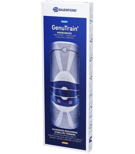 Document sans nom Sangle de genou Genutrain maintien sûr de l'articulation du genou Décharge de la rotule Réduction de la douleur au niveau du ménisque Ajustement anatomique Aide à l'enfilage intégrée Taille : 4 / titane Remplissage net: 1 pièce Données du fabricant: Bauerfeind AG ...