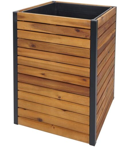 HHG - Jardinière sur pied 581, Jardinière sur pied, Outdoor bois d'acacia certifié mvg aluminium, 60x42x42cm brun