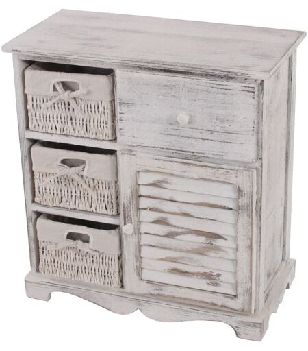 HHG - Commode / table d'appoint / armoire, 3 paniers, 1 tiroir, 60x30x63cm, shabby, vintage, blanc