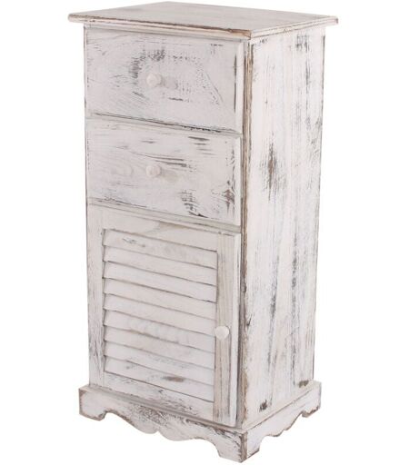 HHG - Commode / armoire, 2 tiroirs, 1 porte, 40x32x80cm, shabby, vintage, blanc