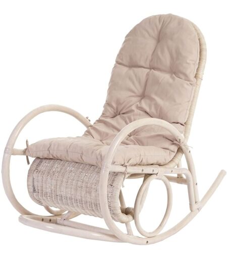 HHG - Fauteuil à bascule Esmeraldas, rocking-chair, fauteuil en rotin, blanc, rembourrage crème