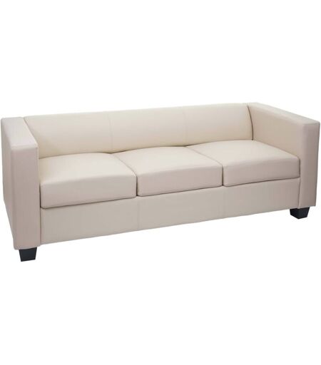 HHG - Canapé / sofa Lille, 3 places, 191x75x70cm, simili-cuir, crème